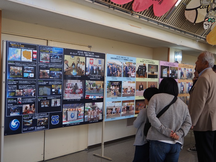 4 listopada z okazji 100-lecia stosunków dyplomatycznych między Japonią a Polską odbył się Festiwal Polski w Okinoshimie. Data została ustalona specjalnie na czas wizyty w Japonii polskiej delegacji z Krotoszyna (miasto partnerskie Okinoshimy). W Krotoszynie znajduje się siedziba Polskiego Związku Sumo. Organizowane są w nim nie tylko treningi sumo, ale także prestiżowe zawody o randze krajowej i międzynarodowej. Klub zrzesza ponad 40 zawodników sumo. Okinoshima przyjmuje regularnie delegacje polskich sumoków i od wielu lat podtrzymuje przyjazne relacje z Krotoszynem.